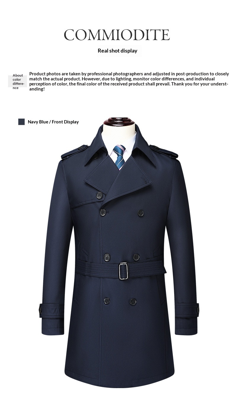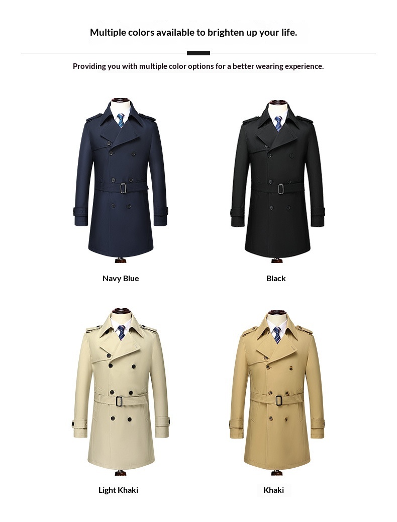 Men's Fashionable Mid-length Double-breasted Trench Coat